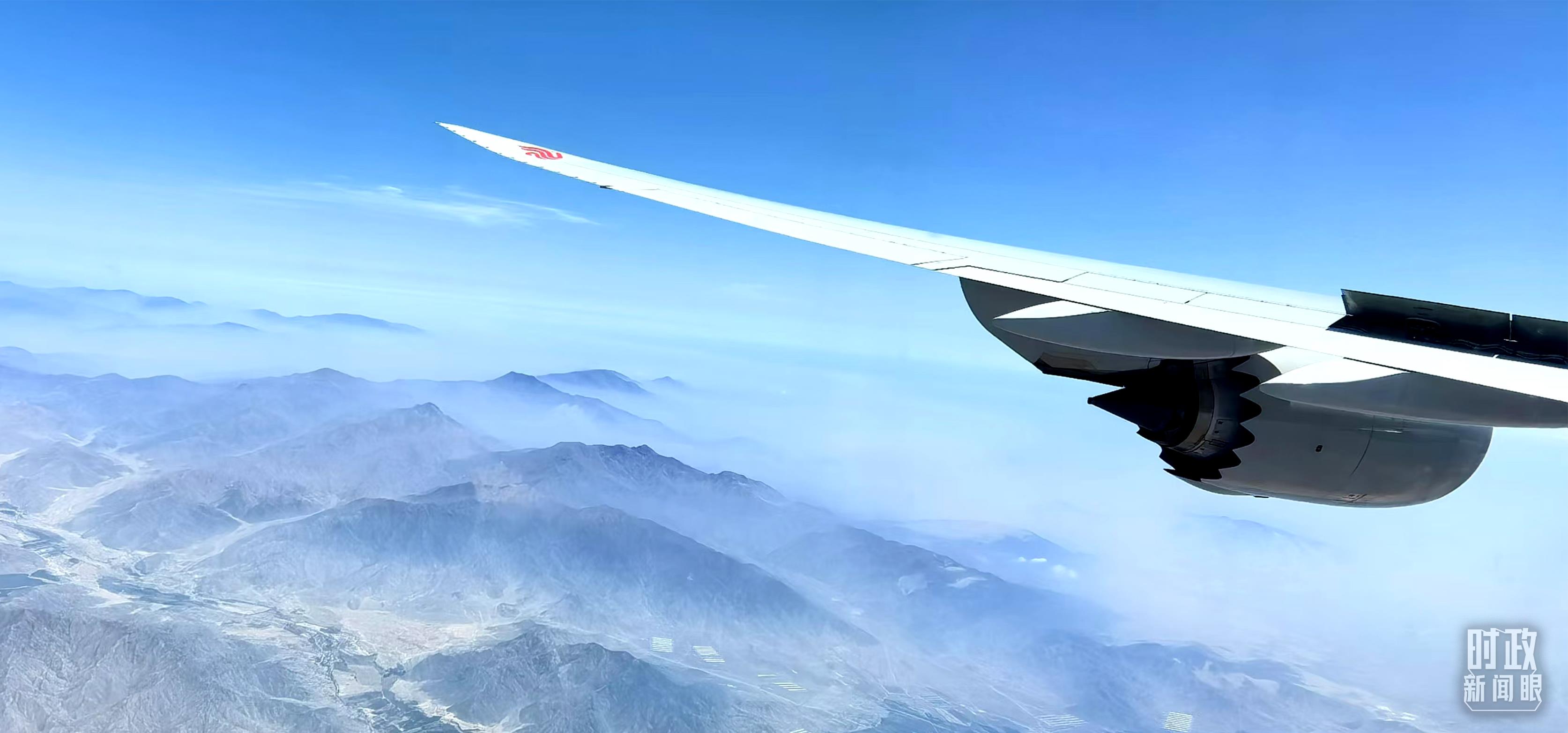 △習(xí)主席乘坐的專機(jī)即將抵達(dá)利馬。(總臺央視記者李錚拍攝)