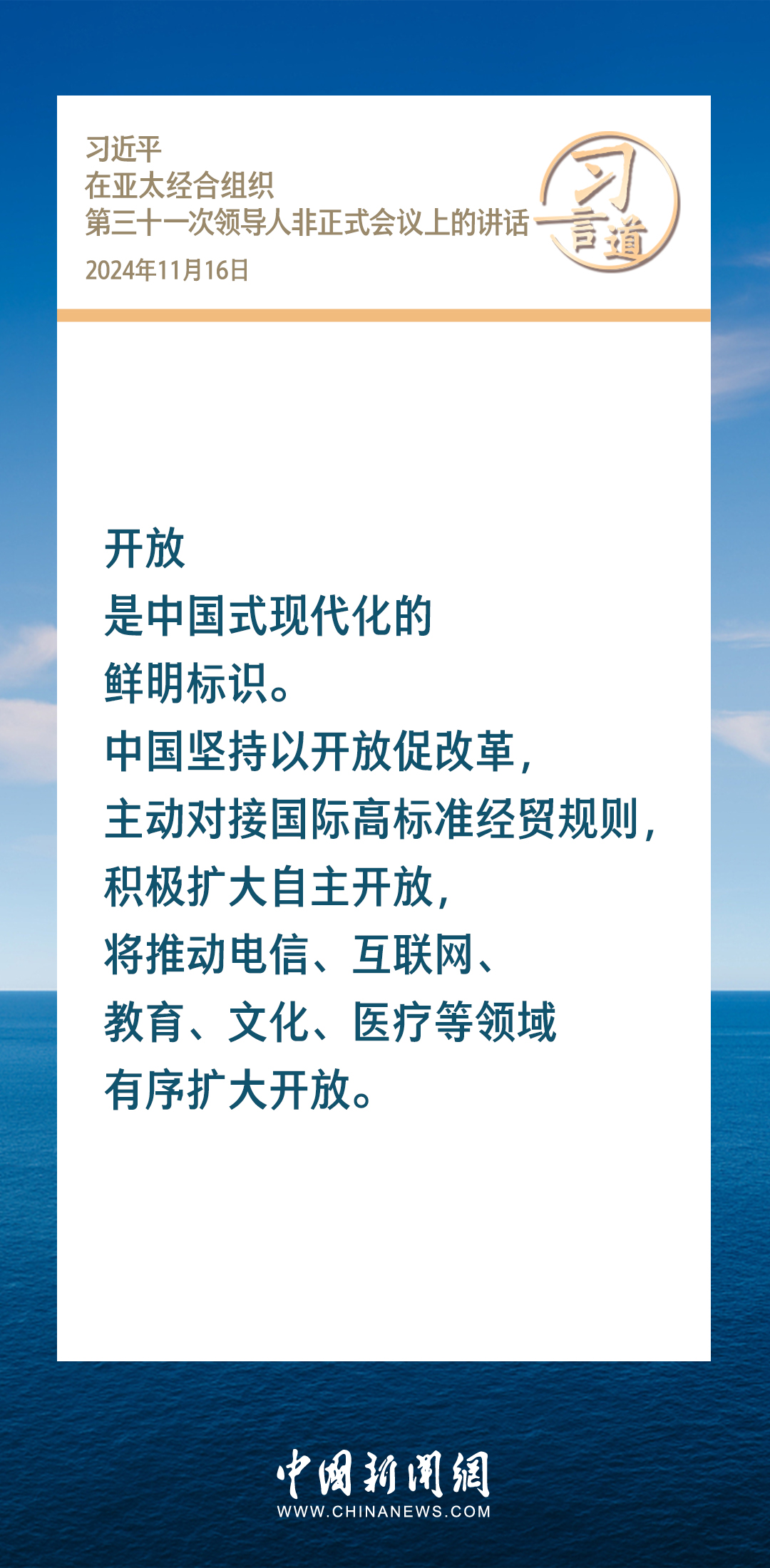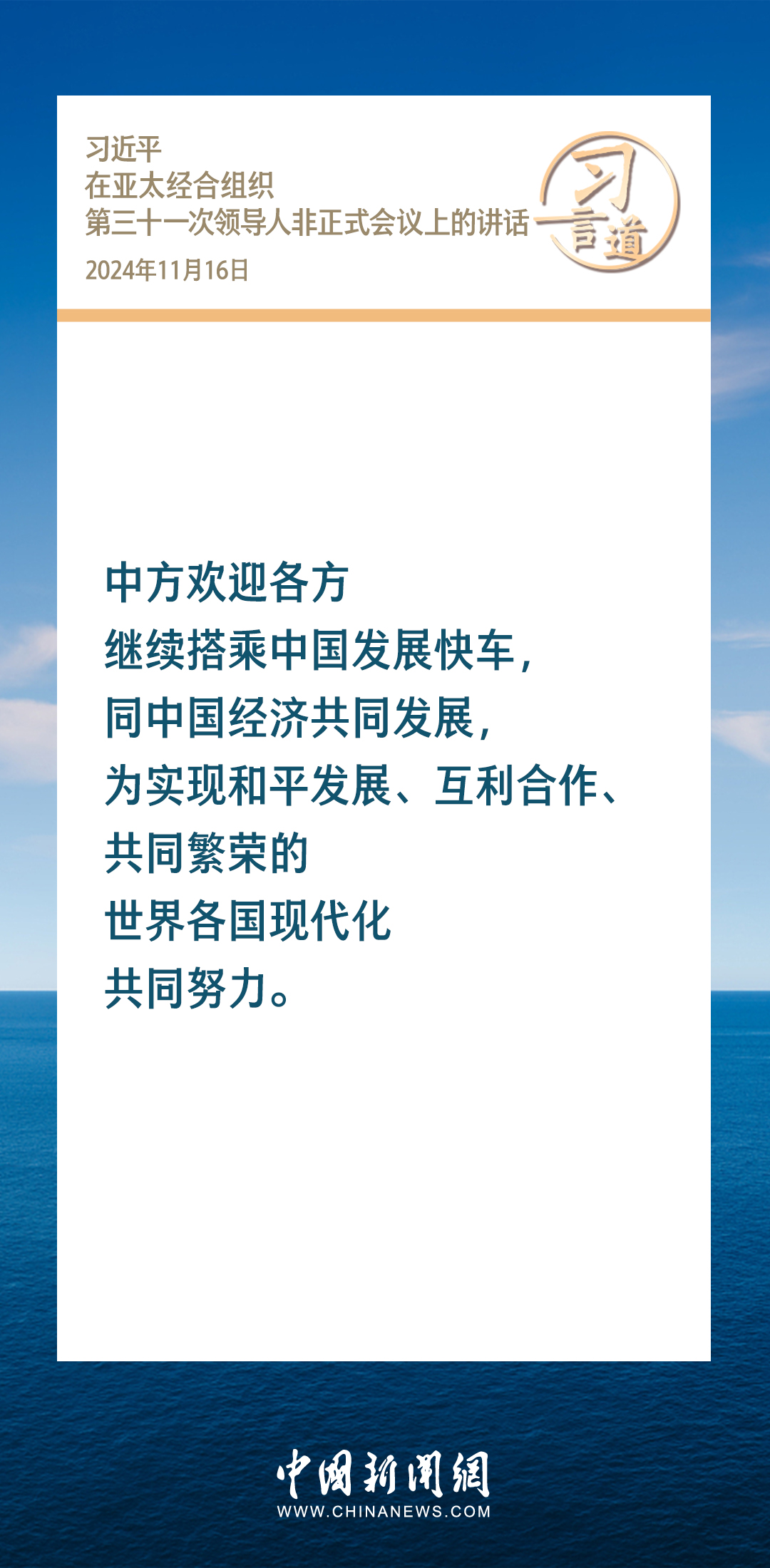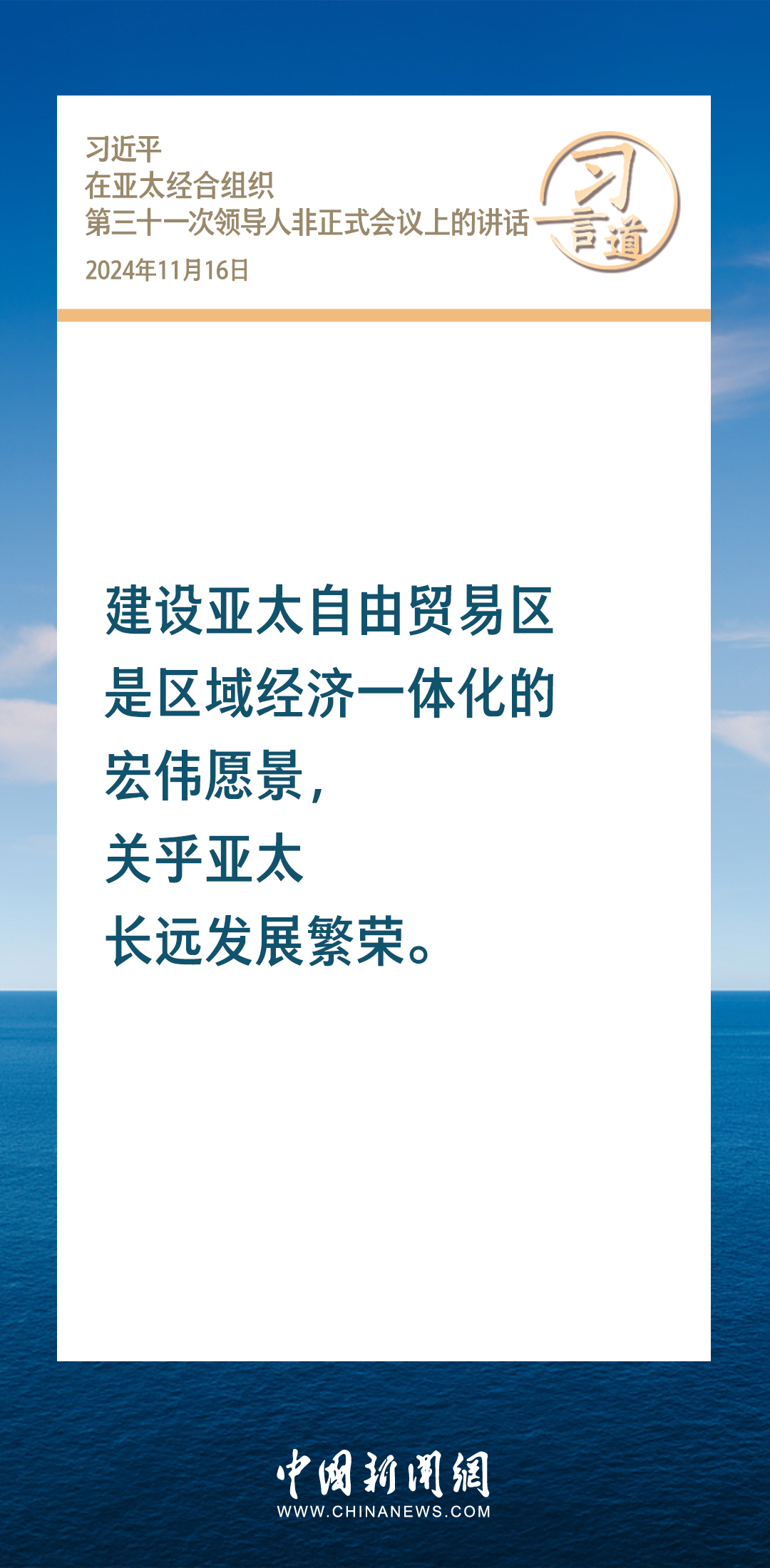 當?shù)貢r間11月16日,國家主席習近平出席亞太經(jīng)合組織第三十一次領導人非正式會議并發(fā)表重要講話。習近平指出——