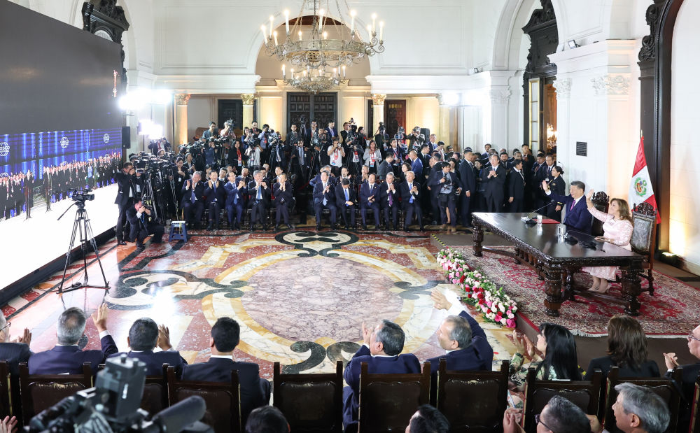 當(dāng)?shù)貢r(shí)間11月14日晚,國(guó)家主席習(xí)近平同秘魯總統(tǒng)博魯阿爾特在利馬總統(tǒng)府以視頻方式共同出席錢(qián)凱港開(kāi)港儀式。