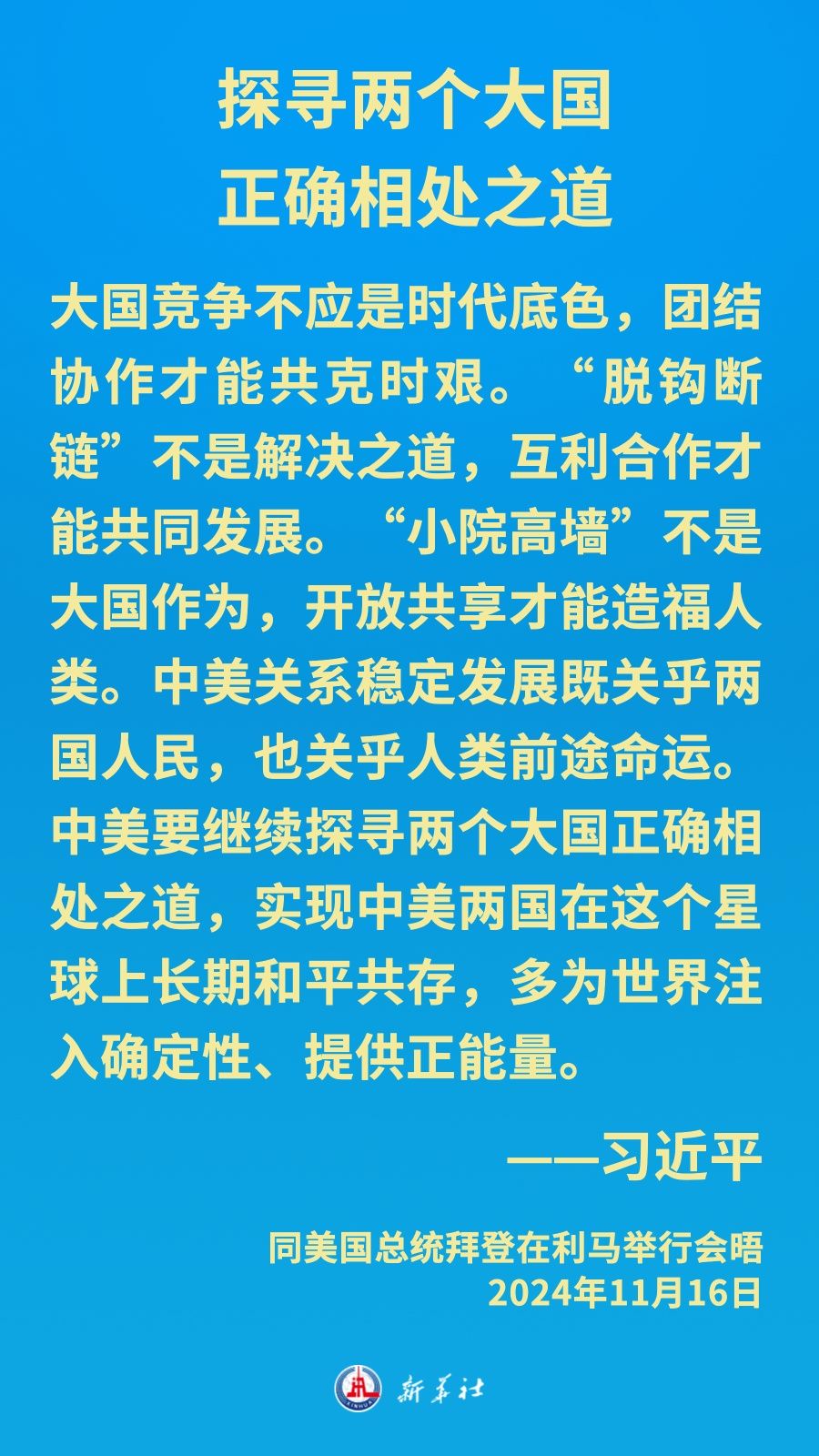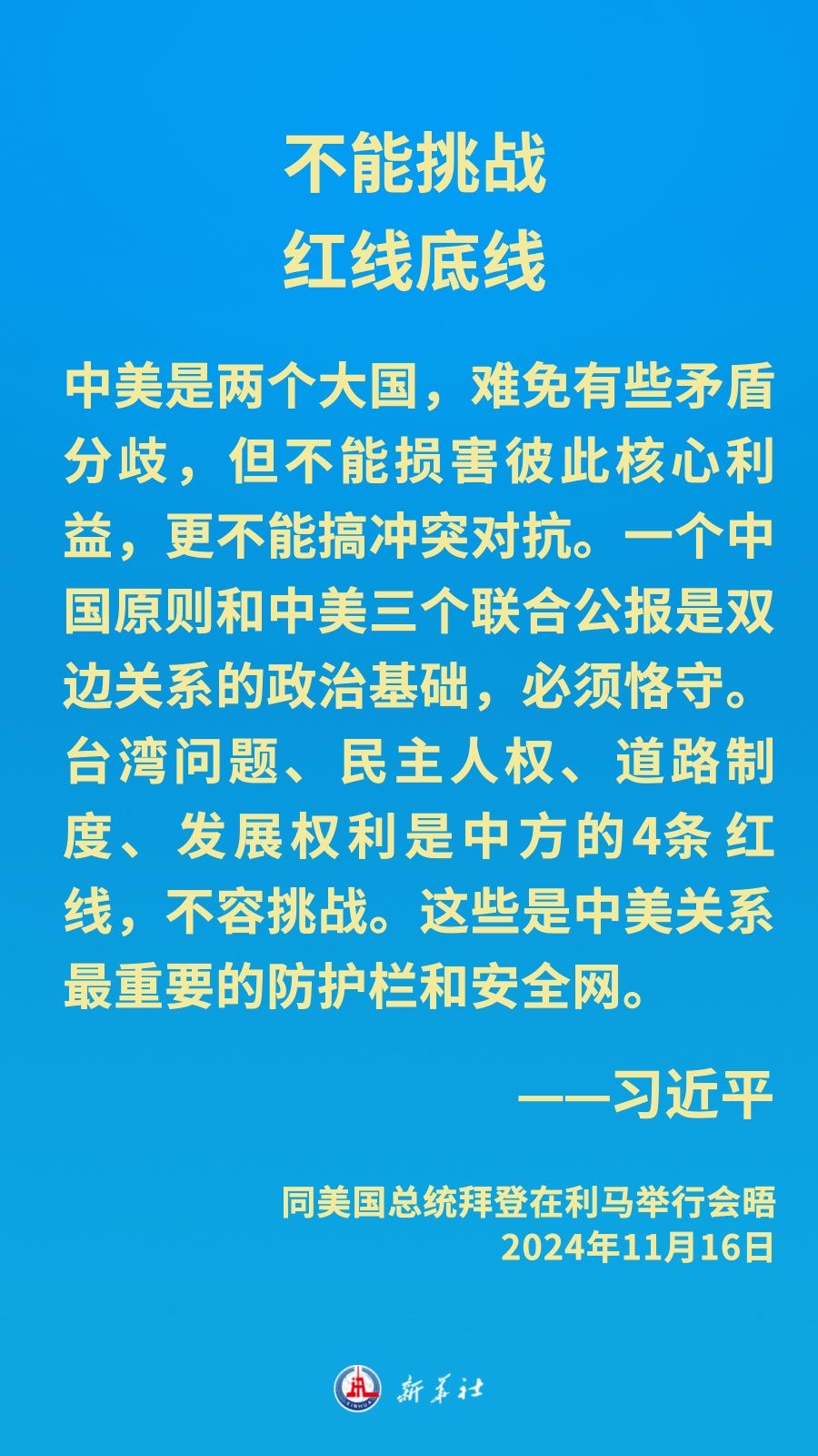 當(dāng)?shù)貢r(shí)間11月16日下午,習(xí)近平主席在秘魯利馬出席亞太經(jīng)合組織領(lǐng)導(dǎo)人非正式會(huì)議期間應(yīng)約同美國(guó)總統(tǒng)拜登舉行會(huì)晤。就中美關(guān)系發(fā)展,習(xí)近平主席闡明中方立場(chǎng)——