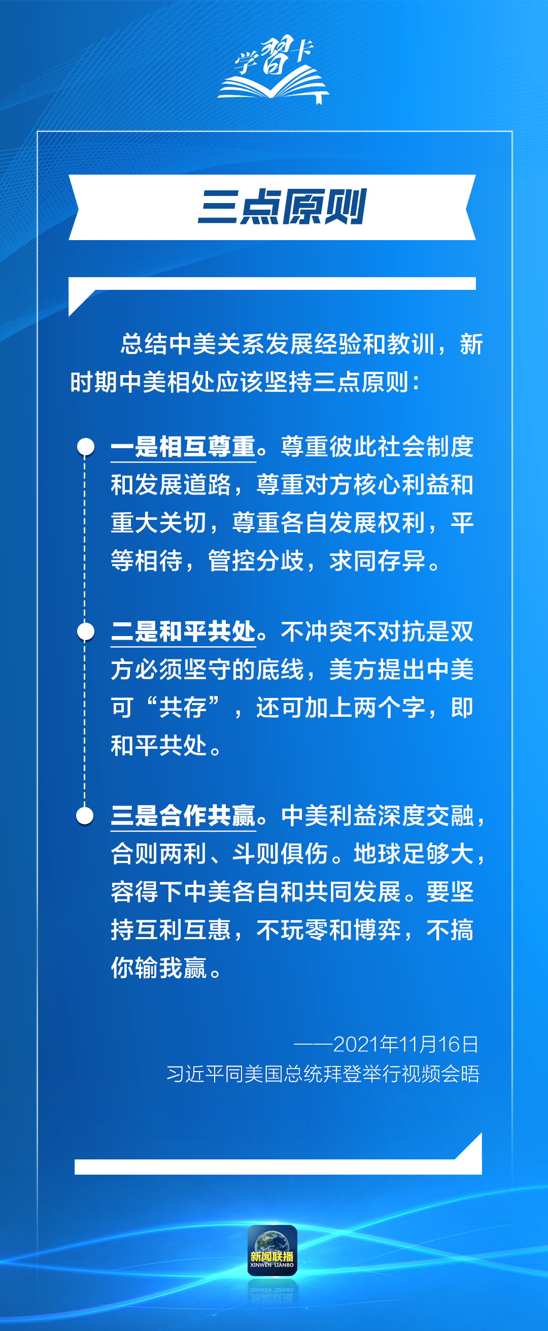 新時期新形勢下,中美關系如何發(fā)展?中美相處應該堅持哪些原則?習主席近年來作出一系列重要論述,一起學習↓↓↓