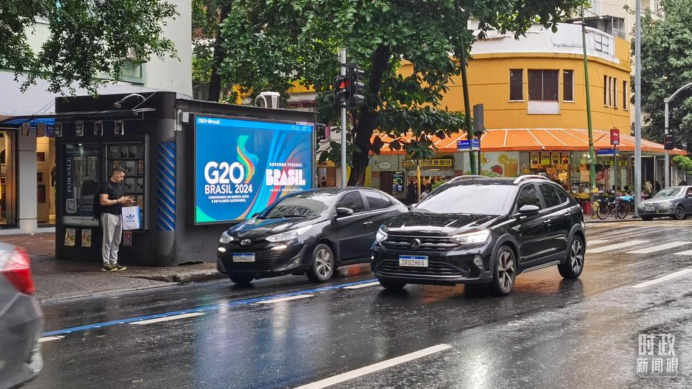 巴西里約熱內(nèi)盧街頭的G20標(biāo)識(shí)。(總臺(tái)央視記者劉琦拍攝)