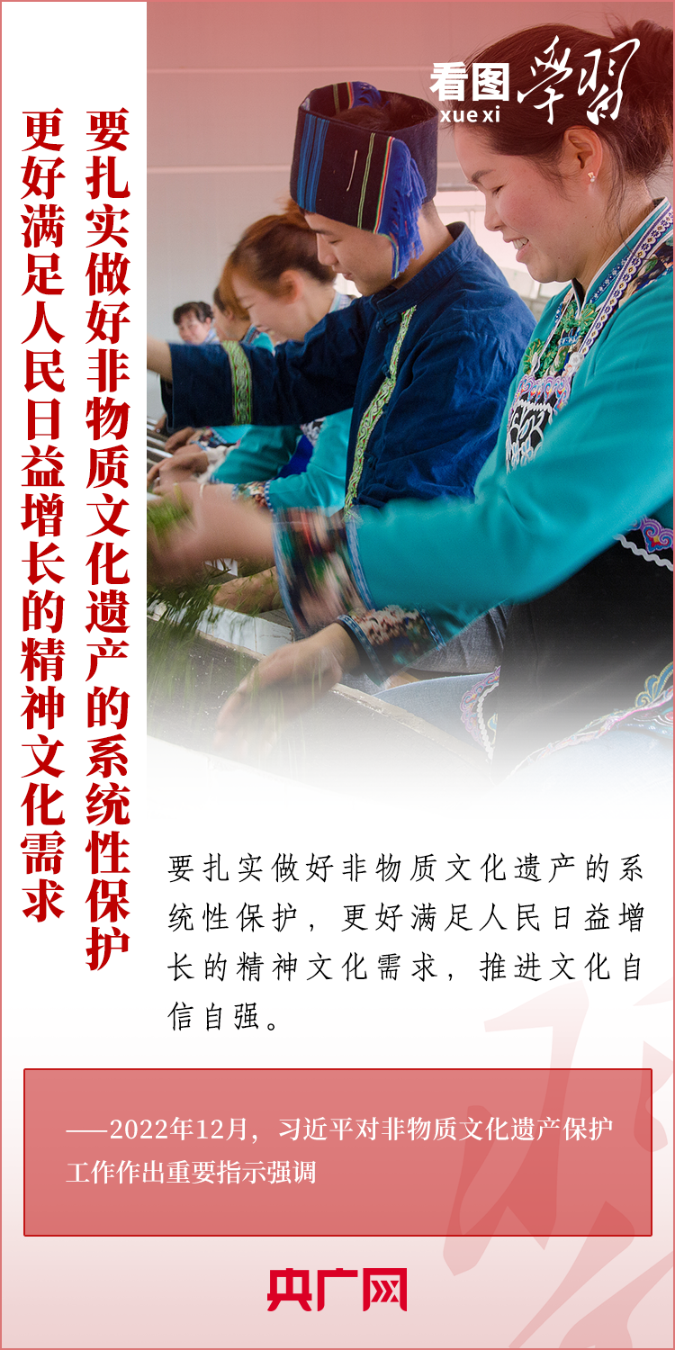 非物質(zhì)文化遺產(chǎn)是中華優(yōu)秀傳統(tǒng)文化的重要組成部分,是中華文明綿延傳承的生動見證。習(xí)近平總書記高度重視推動中華優(yōu)秀傳統(tǒng)文化的創(chuàng)造性轉(zhuǎn)化、創(chuàng)新性發(fā)展,多次對非物質(zhì)文化遺產(chǎn)保護(hù)工作作出重要指示,強(qiáng)調(diào)要扎實(shí)做好非物質(zhì)文化遺產(chǎn)的系統(tǒng)性保護(hù),推動中華文化更好走向世界。