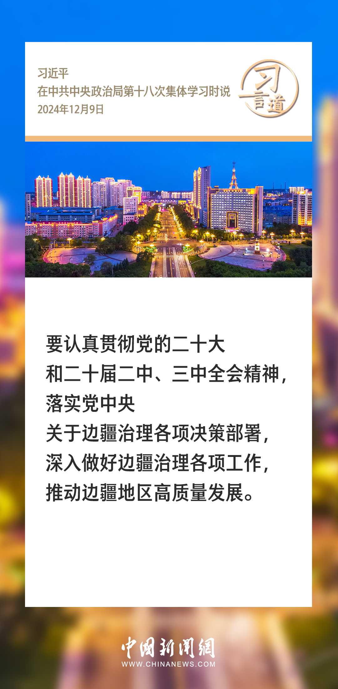 中共中央政治局12月9日就我國歷史上的邊疆治理進(jìn)行第十八次集體學(xué)習(xí)。中共中央總書記習(xí)近平在主持學(xué)習(xí)時強調(diào)——