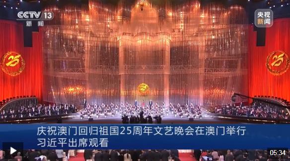 鏡海揚(yáng)帆風(fēng)正勁,濠江歡歌向未來(lái)。慶祝澳門回歸祖國(guó)25周年文藝晚會(huì)19日晚在澳門東亞運(yùn)動(dòng)會(huì)體育館舉行。中共中央總書記、國(guó)家主席、中央軍委主席習(xí)近平觀看了演出。