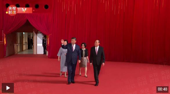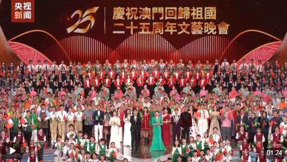 晚會(huì)最后,習(xí)近平同全場(chǎng)觀眾一起高唱《歌唱祖國(guó)》,祝愿?jìng)ゴ笞鎳?guó)繁榮富強(qiáng),祝福澳門明天更加美好。習(xí)近平向全體演員和觀眾揮手致意,晚會(huì)氣氛被推向高潮,歌聲和掌聲匯成歡樂(lè)的海洋。