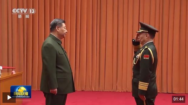 上午10時許,晉銜儀式在莊嚴的中華人民共和國國歌聲中開始。中央軍委副主席張又俠宣讀了中央軍委主席習(xí)近平簽署的晉升上將軍銜命令。中央軍委副主席何衛(wèi)東主持晉銜儀式。