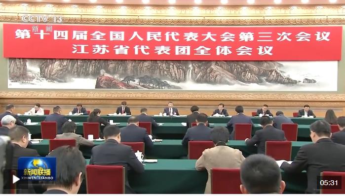 江蘇代表團審議現(xiàn)場。(總臺央視記者程鋮拍攝)
