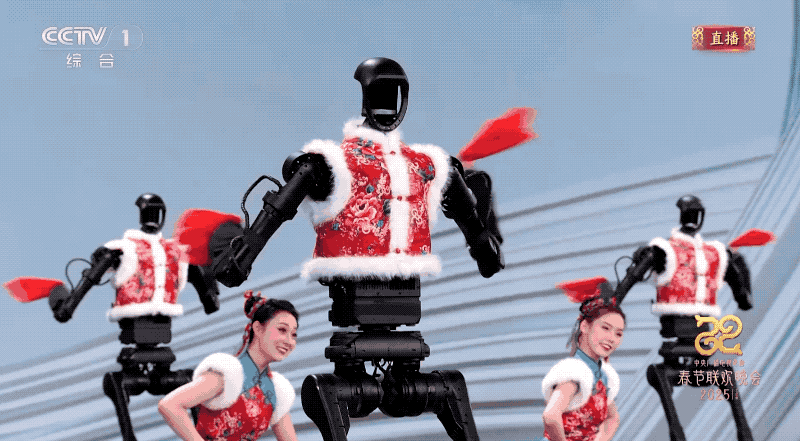 在2025年總臺(tái)央視春晚上,宇樹科技的16個(gè)人形機(jī)器人與16名舞蹈演員協(xié)同共舞。