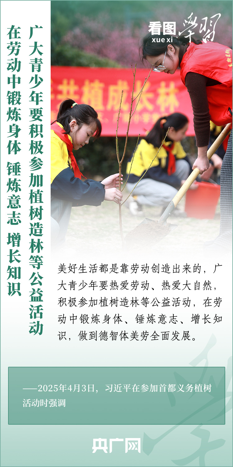 植樹造林是生態(tài)文明建設重要一環(huán)。4月3日,習近平總書記參加首都義務植樹活動。在植樹現(xiàn)場,總書記高度肯定國土綠化工作取得來之不易的成績,強調綠化祖國必須堅持“三綠”并舉、“四庫”聯(lián)動,要更加注重“提質”“興業(yè)”“利民”,“匯聚共建美麗中國的磅礴力量,讓祖國大地更加綠意盎然、生機勃發(fā)”。一起來學習!