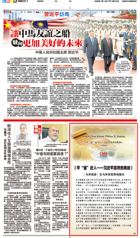 4月15日,馬來(lái)西亞中文、英文、馬來(lái)文主流媒體《星洲日?qǐng)?bào)》《星報(bào)》《陽(yáng)光日?qǐng)?bào)》分別刊發(fā)節(jié)目在馬來(lái)西亞落播的消息。文章指出,《平“語(yǔ)”近人——習(xí)近平喜歡的典故》(馬來(lái)語(yǔ)版)特別選取了“萬(wàn)物各得其和以生,各得其養(yǎng)以成”等典故,生動(dòng)闡釋中國(guó)堅(jiān)持不同文明之間平等交流、互學(xué)互鑒,愿意為人類破解時(shí)代難題、實(shí)現(xiàn)共同發(fā)展提供強(qiáng)大的精神指引,有助于馬來(lái)西亞民眾更好讀懂新時(shí)代中國(guó)之治的成功密碼,感知中國(guó)式現(xiàn)代化蓬勃發(fā)展的強(qiáng)勁脈動(dòng)。