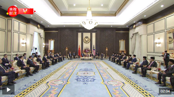 4月16日上午,馬來(lái)西亞最高元首易卜拉欣在馬來(lái)西亞國(guó)家王宮同中國(guó)國(guó)家主席習(xí)近平舉行會(huì)見(jiàn)。