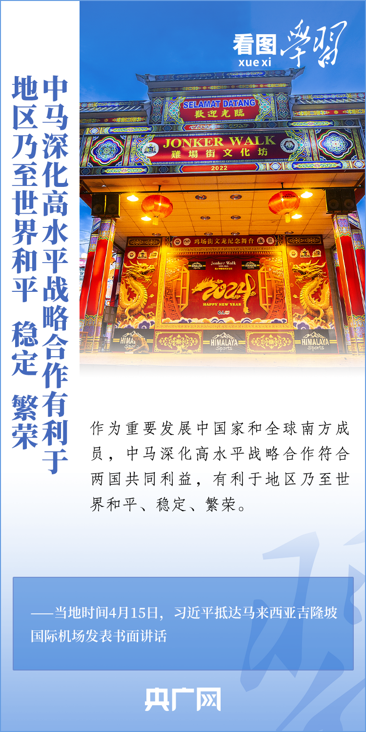 “中國和馬來西亞是好鄰居、好朋友、好伙伴,常來常往、親如一家?!?月15日至17日,國家主席習近平應(yīng)邀對馬來西亞進行國事訪問。訪問期間,習主席高度評價中馬關(guān)系,就共同打造高水平戰(zhàn)略性中馬命運共同體,譜寫睦鄰友好、團結(jié)合作新篇章,開啟中馬關(guān)系新的“黃金50年”擘畫藍圖和愿景。一起來學習!