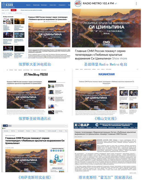 俄羅斯大亞洲電視臺、圣彼得堡Radio Metro電臺、俄羅斯圣彼得通訊社、《喀山文化報(bào)》《哈薩克斯坦實(shí)業(yè)報(bào)》、塔吉克斯坦“霍瓦爾”國家通訊社等亞歐地區(qū)多家主流媒體播發(fā)相關(guān)報(bào)道。
