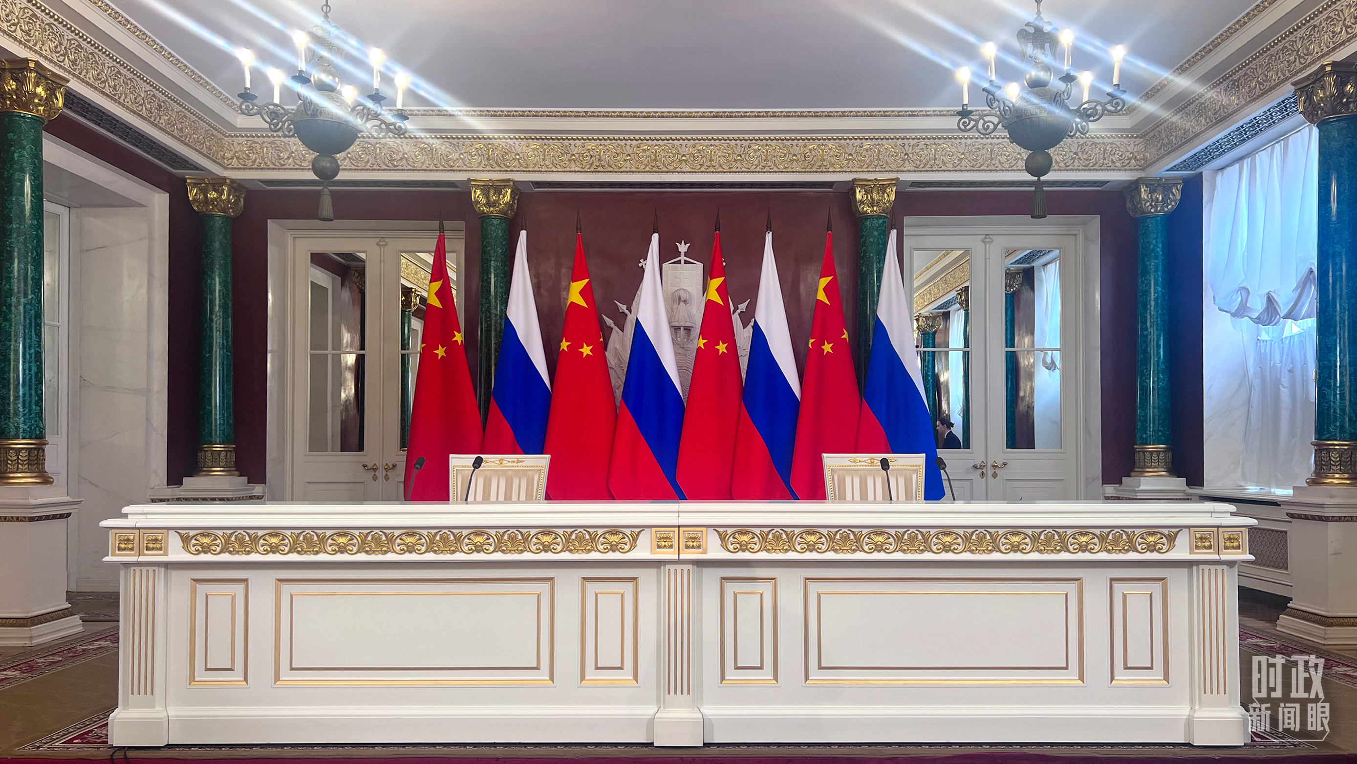 習(xí)主席和普京總統(tǒng)舉行大范圍會(huì)談的會(huì)場(chǎng)。(總臺(tái)央視記者趙東辰拍攝)