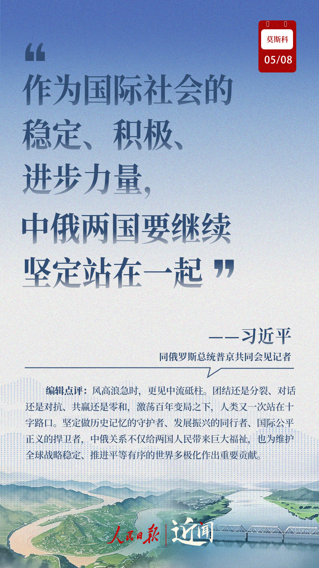 做百煉成鋼的真朋友、彼此成就的好伙伴、國(guó)際秩序的捍衛(wèi)者、全球治理的引領(lǐng)者,在紀(jì)念中國(guó)人民抗日戰(zhàn)爭(zhēng)、蘇聯(lián)偉大衛(wèi)國(guó)戰(zhàn)爭(zhēng)勝利和聯(lián)合國(guó)成立80周年之際,中俄新時(shí)代全面戰(zhàn)略協(xié)作伙伴關(guān)系進(jìn)一步深化。