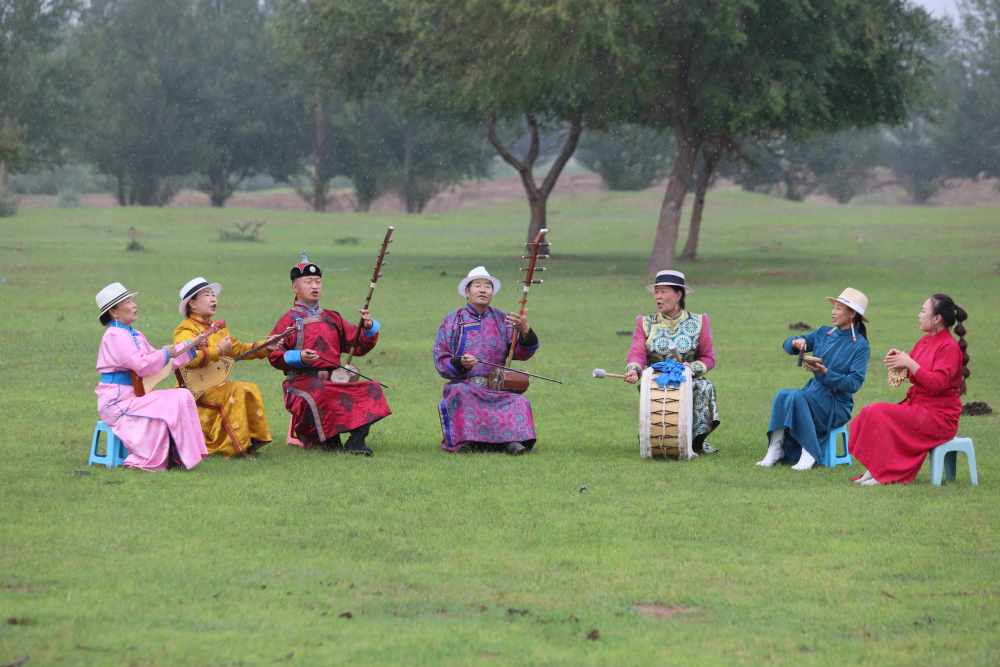 2024年7月16日,《格薩(斯)爾》史詩(shī)說(shuō)唱傳承人在內(nèi)蒙古赤峰市巴林右旗戶(hù)外表演。(胡斯楞攝)