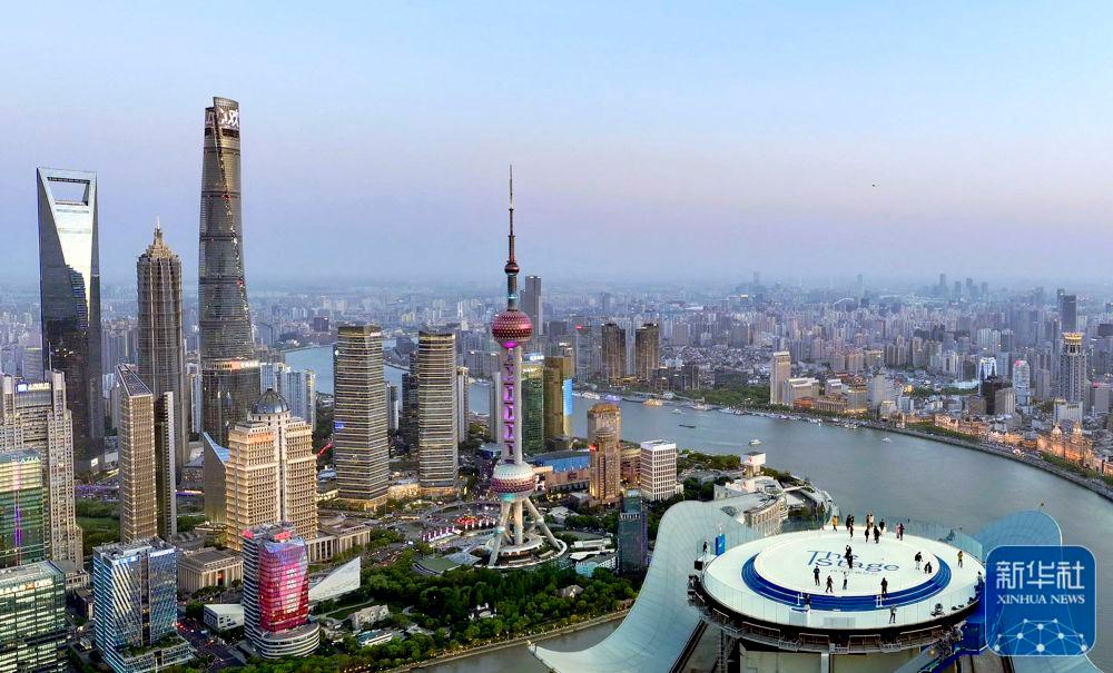 2025年4月14日在上海白玉蘭觀景臺拍攝的城市天際線(無人機照片)。