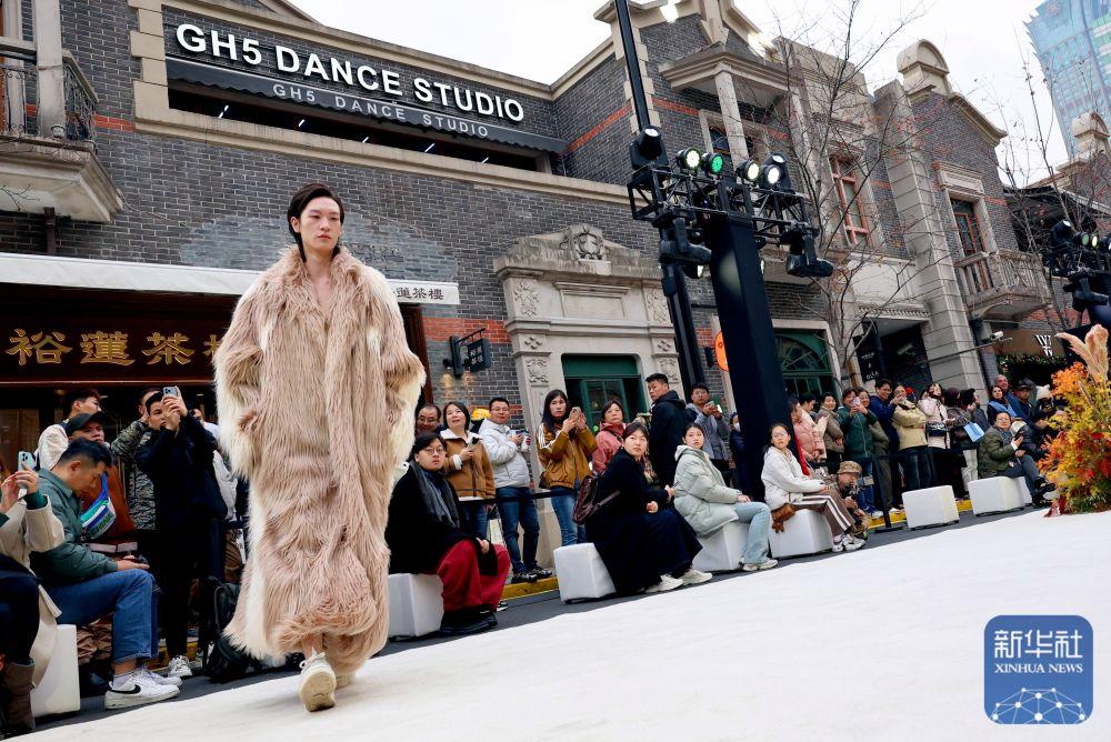 2024年12月7日,模特在“海·派張園時尚文化周”中國青年設計師時裝秀上展示設計師服裝作品。時裝秀以張園建筑主色調(diào)與設計線條為靈感,百年石庫門建筑群落為背景,將茂名北路作為T臺秀場,獨具上海特色。