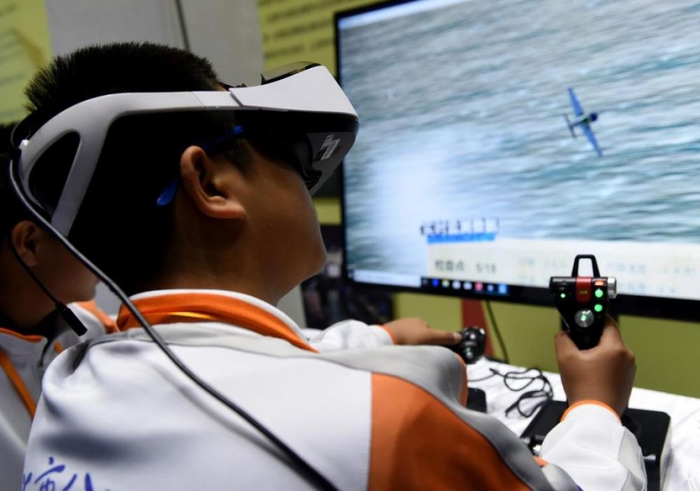北京市八一學(xué)校的學(xué)生在北京市中小學(xué)生特色科技活動(dòng)展示上體驗(yàn)VR技術(shù)(2018年11月24日攝)新華社記者 羅曉光 攝。