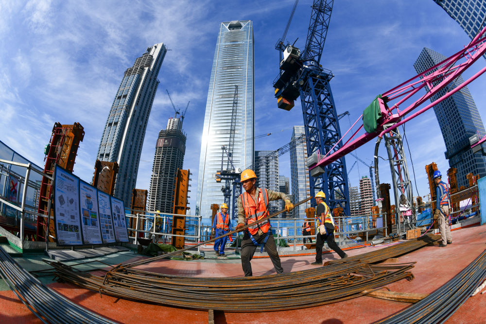 2024年10月3日,中建五局的建設者在深圳灣超級總部基地C塔項目建設現(xiàn)場施工。新華社記者 梁旭 攝
