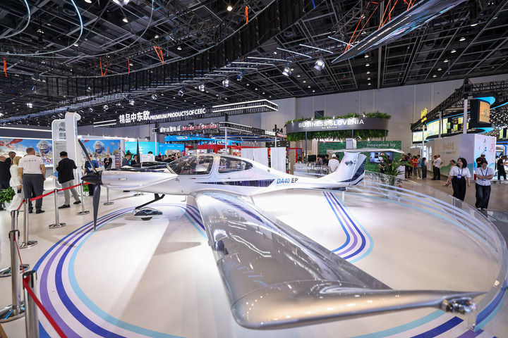 這是2025年5月22日在第四屆中國-中東歐國家博覽會暨國際消費品博覽會“數(shù)智中東歐”展區(qū)拍攝的輕型飛機。5月22日至25日,第四屆中國-中東歐國家博覽會暨國際消費品博覽會在浙江寧波舉行。新華社記者 江漢 攝