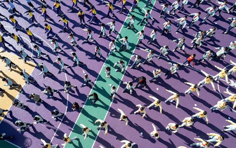 △2025年2月28日,云南昆明金康園小學(xué)學(xué)生在操場上做課間操。