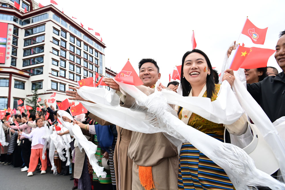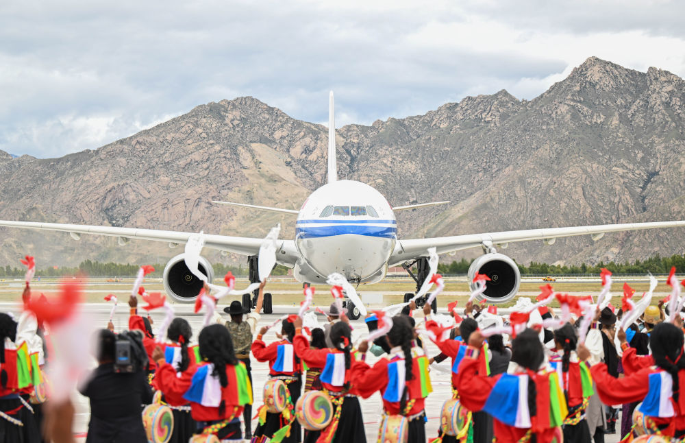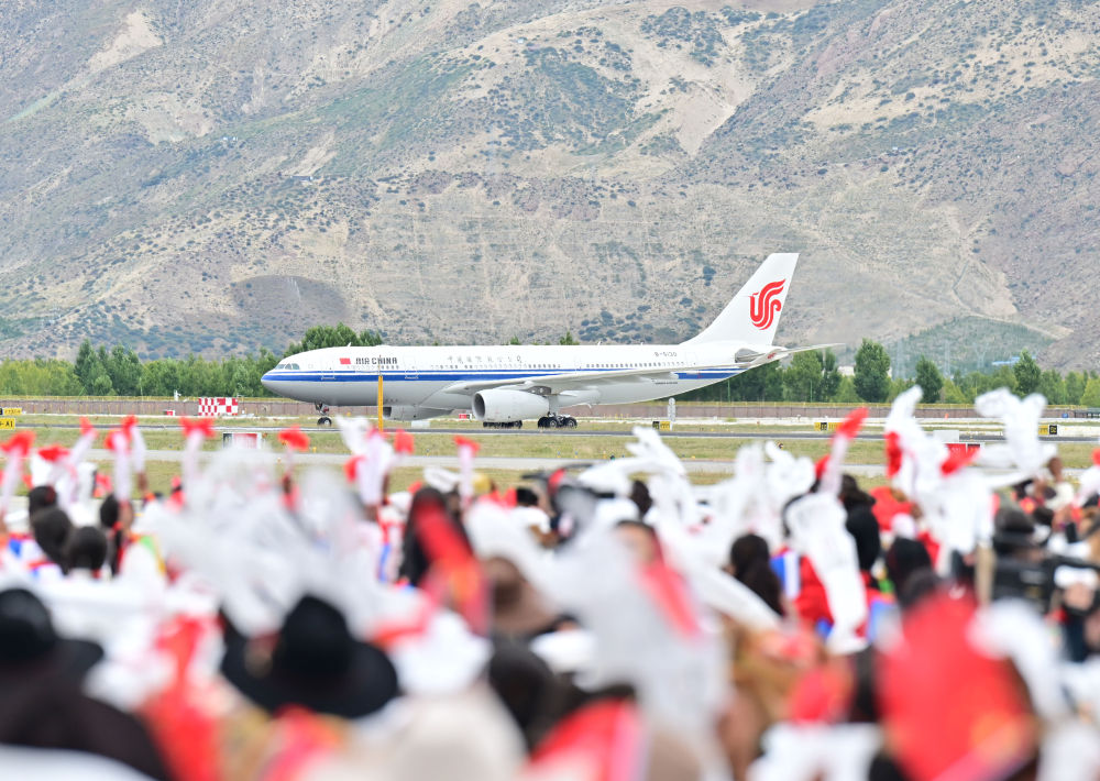 中共中央總書記、國家主席、中央軍委主席習(xí)近平率中央代表團(tuán)20日中午乘專機(jī)抵達(dá)拉薩,出席西藏自治區(qū)成立60周年慶祝活動(dòng)。習(xí)近平等在機(jī)場(chǎng)和拉薩市區(qū)受到西藏各族群眾的熱烈歡迎。