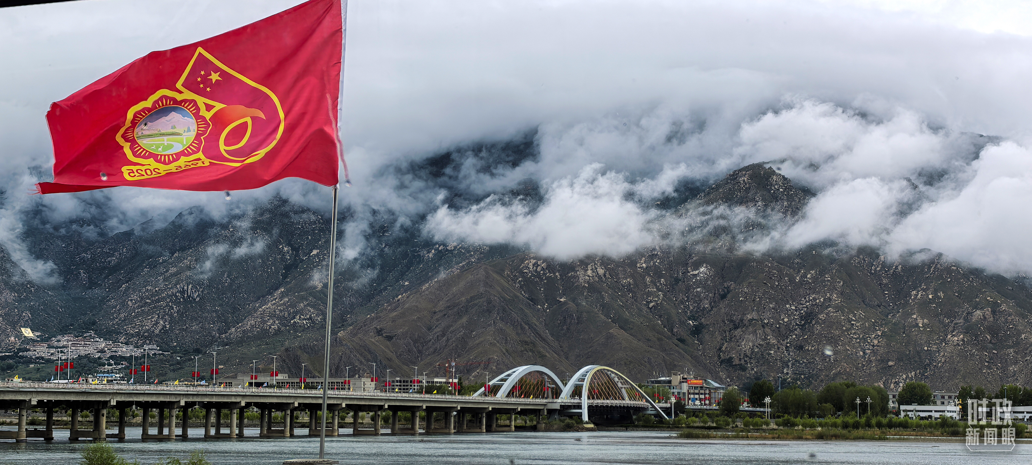 西藏自治區(qū)成立60周年標(biāo)識(shí)。(總臺(tái)央視記者韓銳拍攝)