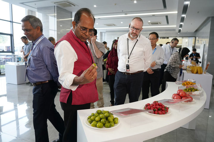 2025年5月19日,參加上海合作組織減貧和可持續(xù)發(fā)展論壇的嘉賓在陜西楊凌種業(yè)創(chuàng)新中心考察。新華社記者 邵瑞 攝