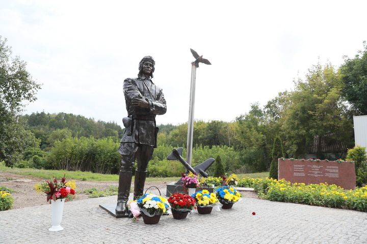 烏克蘭第聶伯河沿岸,秋日的陽(yáng)光灑在庫(kù)里申科學(xué)校對(duì)面的廣場(chǎng)上。身著飛行服的蘇聯(lián)空軍志愿隊(duì)重型轟炸機(jī)大隊(duì)少校大隊(duì)長(zhǎng)庫(kù)里申科的雕塑目視遠(yuǎn)方,在他身邊,一只銅制“蘇聯(lián)雄鷹”展翅翱翔。