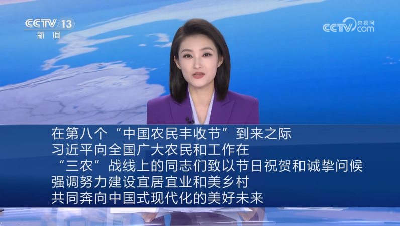 “希望廣大農(nóng)民群眾充分發(fā)揮主動性創(chuàng)造性,社會各界積極支持參與,努力建設(shè)宜居宜業(yè)和美鄉(xiāng)村,共同奔向中國式現(xiàn)代化的美好未來。”在第八個“中國農(nóng)民豐收節(jié)”到來之際,習(xí)近平總書記向全國廣大農(nóng)民和工作在“三農(nóng)”戰(zhàn)線上的同志們致以節(jié)日祝賀和誠摯問候。