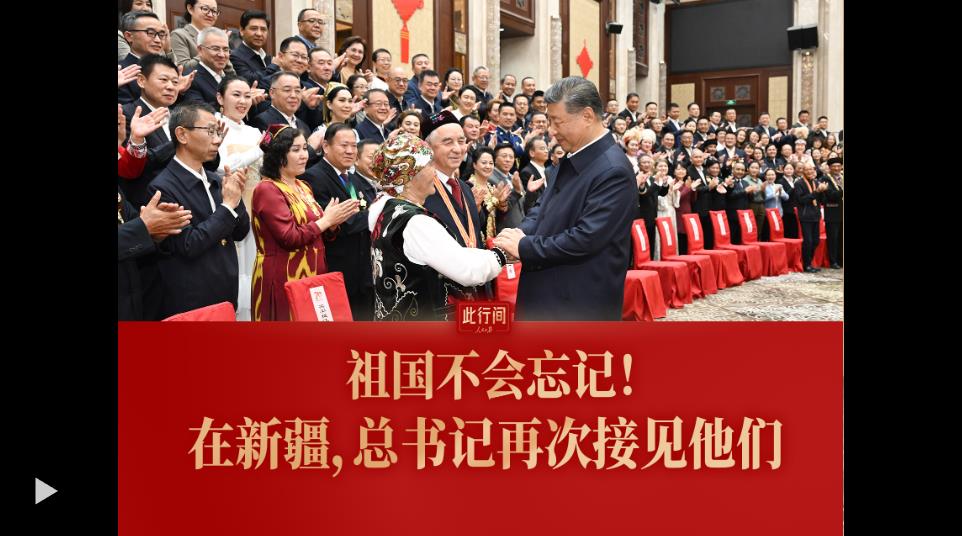 習近平23日下午接見新疆各族各界代表。代表中,我們發(fā)現(xiàn)了這4位,他們是“七一勛章”獲得者魏德友、“七一勛章”獲得者買買提江·吾買爾、“人民楷?!辈既悻敽埂っ斩?、“人民衛(wèi)士”巴依卡·凱力迪別克。習近平總書記微笑著同他們親切握手。