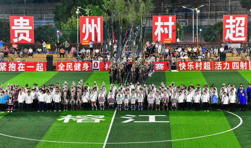 2025年8月23日,村民們?cè)谫F州“村超”球場(chǎng)演唱侗族大歌。當(dāng)日,2025年首屆“村超”全國(guó)賽總決賽在貴州榕江縣“村超”球場(chǎng)舉行。賽事期間同時(shí)舉辦豐富多彩的民族歌舞展演、無(wú)人機(jī)表演、大型煙花秀,吸引數(shù)萬(wàn)觀眾現(xiàn)場(chǎng)觀賽。近年來(lái),貴州“村超”“村BA”等草根賽事持續(xù)升溫,巧妙融合體育競(jìng)技、民族文化與文旅消費(fèi),打造“體育+”模式,撬動(dòng)鄉(xiāng)村流量與經(jīng)濟(jì)增量,賦能鄉(xiāng)村振興。