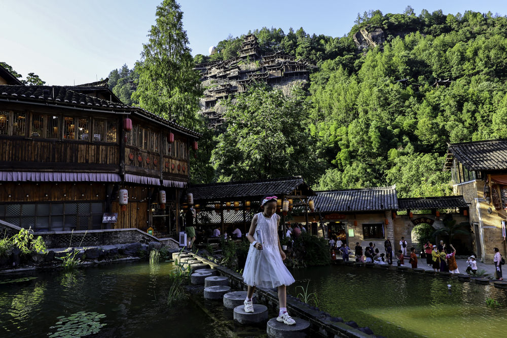 2025年7月11日,游客在位于江西省上饒市望仙鄉(xiāng)的望仙谷景區(qū)游覽。近年來(lái),望仙谷景區(qū)因其獨(dú)特的“仙俠世界”景觀火爆出圈,吸引大批游客來(lái)此觀光。景區(qū)2024年接待游客310萬(wàn)人次,全年實(shí)現(xiàn)旅游收入5.28億元,同時(shí)顯著帶動(dòng)周邊鄉(xiāng)鎮(zhèn)的食、住、行、娛等行業(yè)發(fā)展。望仙谷景區(qū)的建設(shè)運(yùn)營(yíng)促進(jìn)了村民返鄉(xiāng)和能人進(jìn)鄉(xiāng),提供直接就業(yè)崗位超過(guò)2000個(gè),帶動(dòng)周邊就業(yè)3萬(wàn)余人。