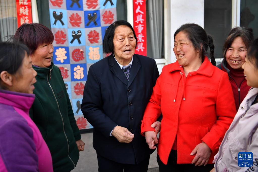 2019年3月23日,申紀(jì)蘭(左三)在山西省平順縣西溝村與村民分享全國兩會精神。新華社記者 曹陽 攝