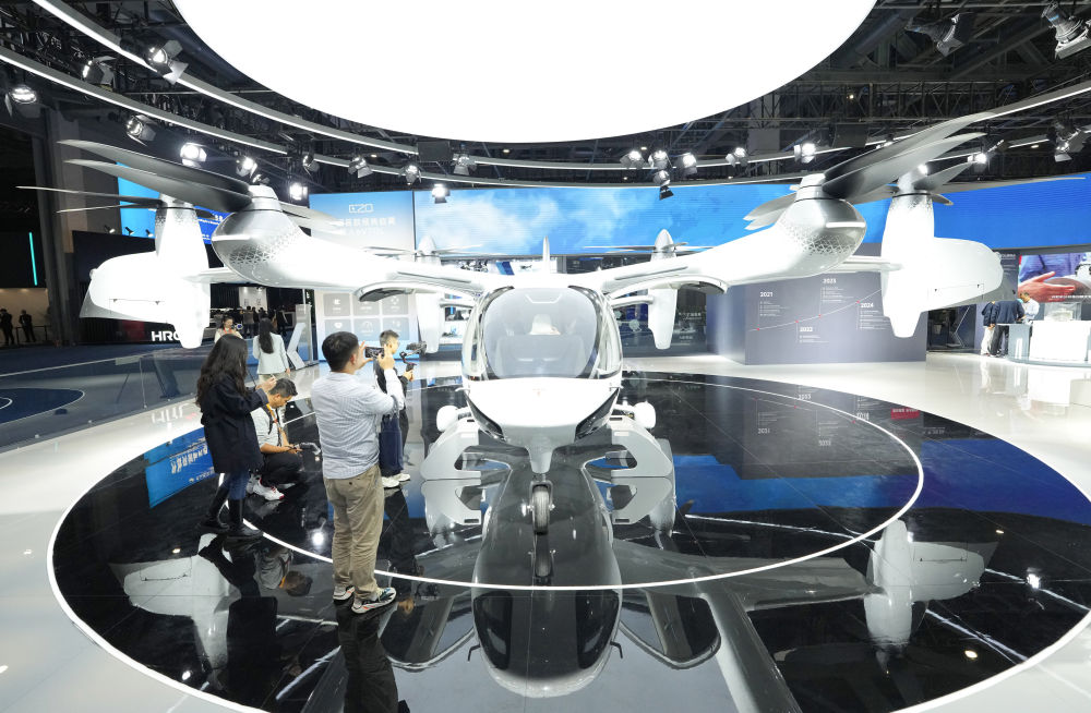 2025年11月5日在第八屆進(jìn)博會汽車及智慧出行展區(qū)拍攝的時的科技E20 eVTOL(電動垂直起降飛行器)。在第八屆進(jìn)博會上,一批新型移動出行產(chǎn)品與創(chuàng)新技術(shù)集中亮相。從智能駕駛到低空出行,從新能源解決方案到人性化設(shè)計……一幅多元化、立體化的未來出行圖景正徐徐展開。