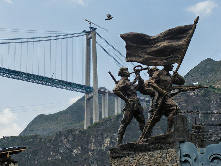 這是2025年4月28日拍攝的貴州花江峽谷大橋。9月28日,新的世界第一高橋——貴州花江峽谷大橋建成通車。近處的則是一座建于1898年、由14根鐵鏈組成的花江鐵索橋。1935年4月,中央紅軍右路縱隊挺進黔西南,死守花江鐵索橋這一戰(zhàn)略要沖,確保紅軍主力順利搶渡北盤江。新舊兩座橋,橫跨著百年歷史風云,見證著血與火的艱辛歷程。