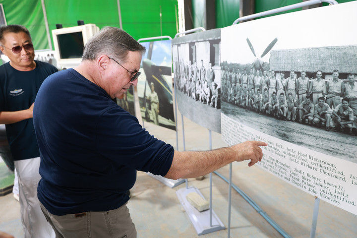 2025年7月16日,美中航空遺產(chǎn)基金會主席杰夫·格林在貴州黃平舊州機場查看飛虎隊資料照片??箲?zhàn)時期,舊州機場主要承擔飛機加油、彈藥補充和維修任務。常駐于此的美國飛虎隊戰(zhàn)機頻頻在該機場起降,參加了湘西會戰(zhàn)、衡陽保衛(wèi)戰(zhàn)等著名戰(zhàn)役。該機場見證了中美聯(lián)合反抗法西斯的光輝歷史,還為確?!榜劮搴骄€”的順利暢通發(fā)揮了舉足輕重的作用。