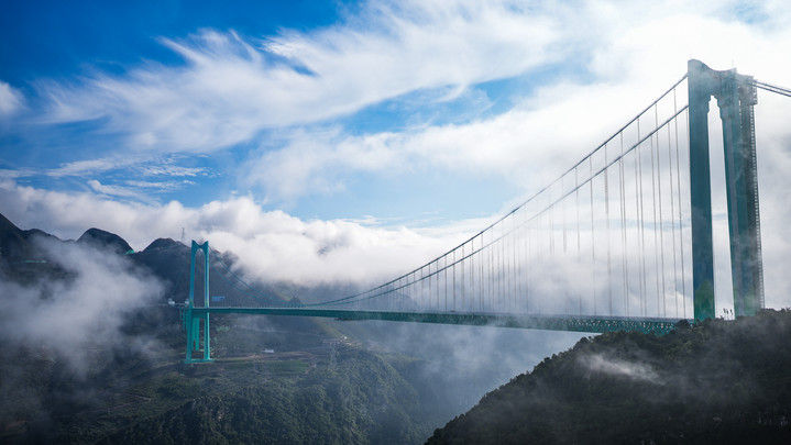 2025年9月28日,世界第一高橋——貴州花江峽谷大橋建成通車?;ń瓖{谷大橋是貴州六枝至安龍高速公路的控制性工程,大橋全長2890米,主跨徑1420米,是目前世界山區(qū)峽谷第一大跨度鋼桁梁懸索橋;其橋面距水面垂直高度625米,是新的世界第一高橋。