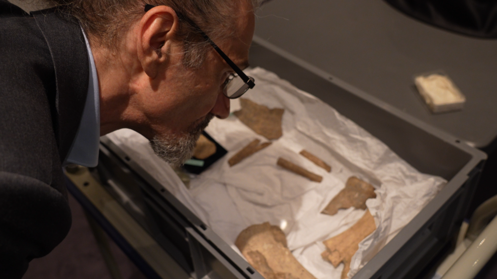 法國賽努奇博物館珍藏著15片甲骨。中國研究團(tuán)隊(duì)帶來高清攝影設(shè)備,從48個角度打光,為每一枚甲骨片留下96張照片?!拔覀兒芨吲d參與這一項(xiàng)目。這對中國文明史很重要,對世界文明史同樣重要?!辟惻娌┪镳^館長埃里克·勒菲弗說。