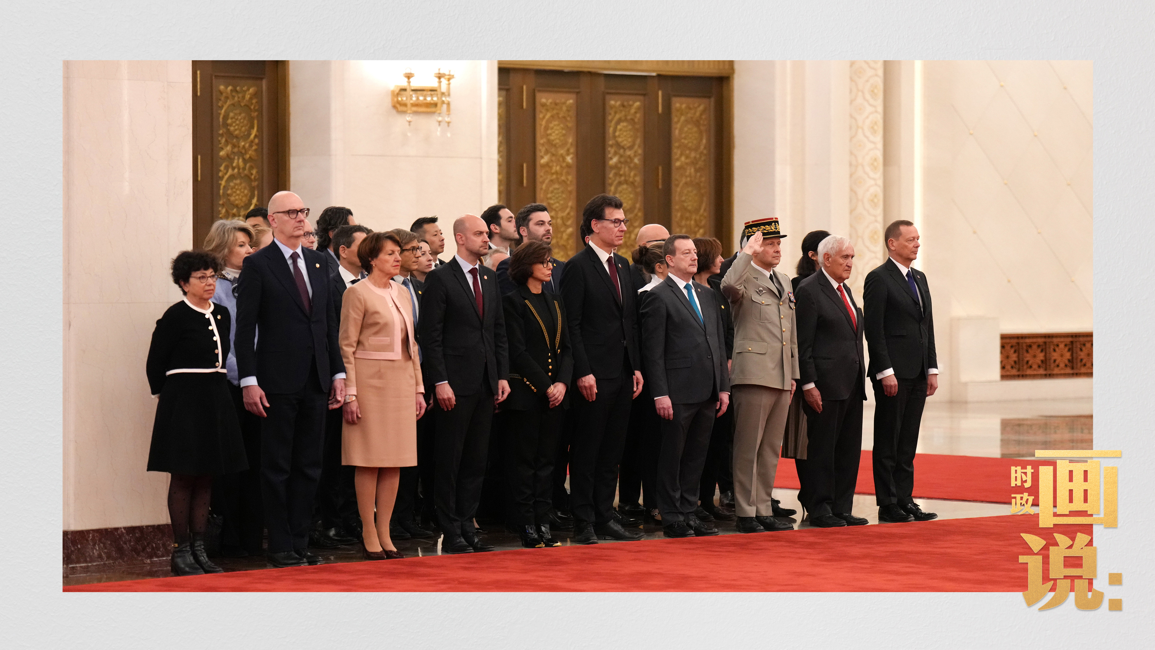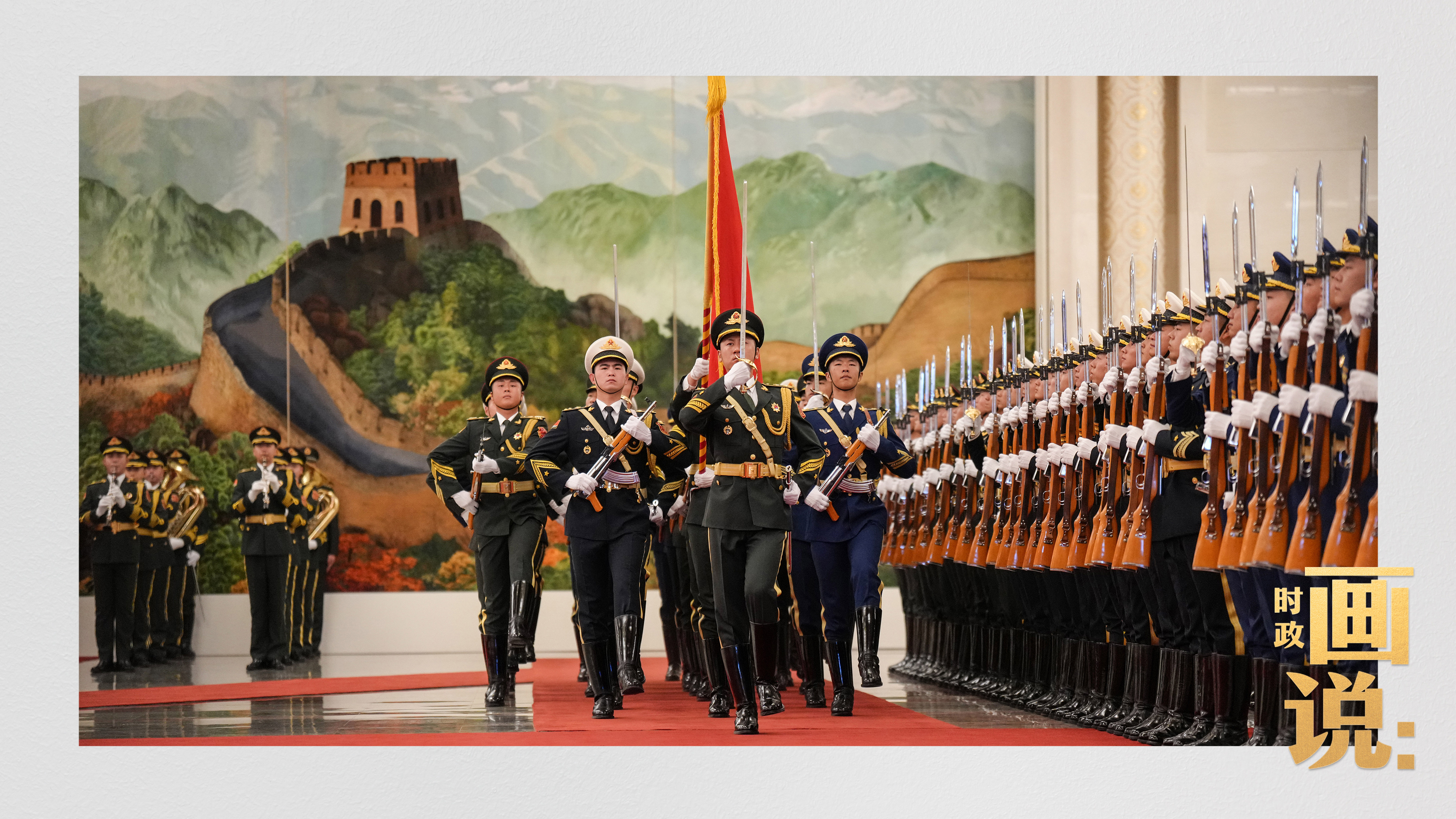 △馬克龍?jiān)诹?xí)近平陪同下檢閱中國(guó)人民解放軍儀仗隊(duì)并觀看分列式