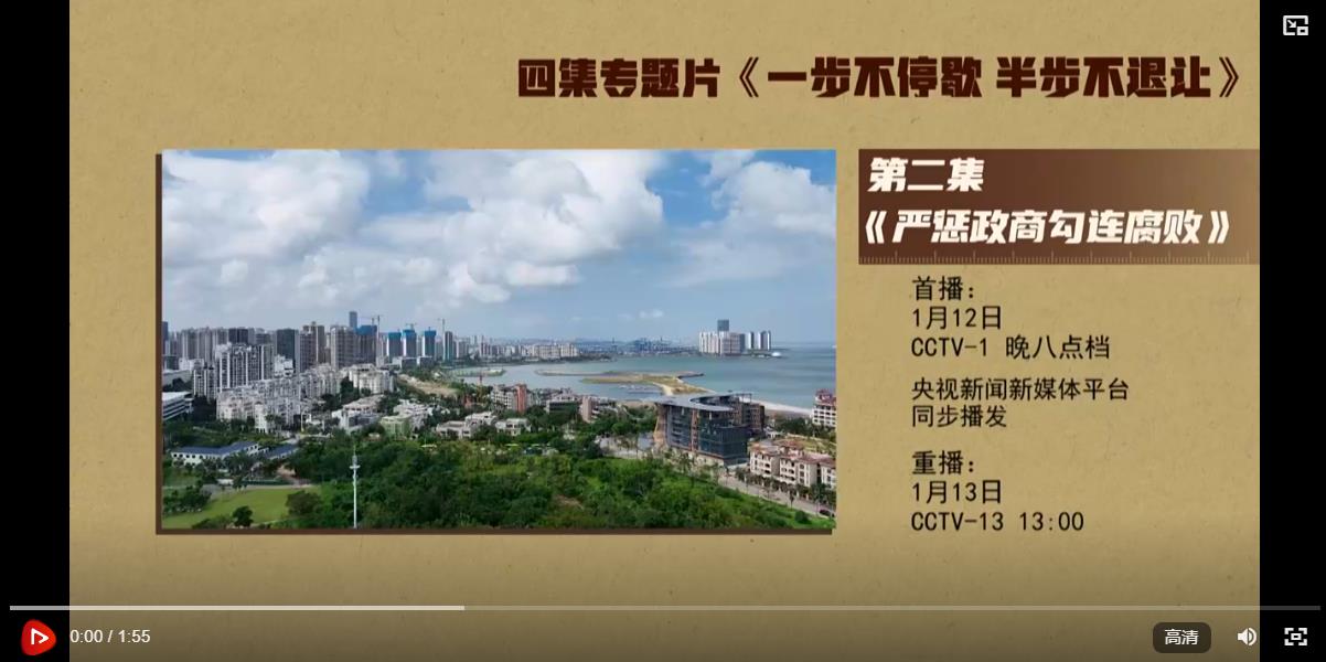 反對腐敗、建設(shè)廉潔政治,是我們黨一貫堅(jiān)持的鮮明政治立場,是黨自我革命必須長期抓好的重大政治任務(wù)。要把嚴(yán)懲政商勾連腐敗作為攻堅(jiān)戰(zhàn)重中之重,堅(jiān)決打擊以權(quán)力為依托的資本逐利行為,堅(jiān)決防止各種利益集團(tuán)、權(quán)勢團(tuán)體向政治領(lǐng)域滲透,不斷凈化政治生態(tài),推動(dòng)構(gòu)建親清統(tǒng)一的新型政商關(guān)系,促進(jìn)經(jīng)濟(jì)社會(huì)高質(zhì)量發(fā)展。電視專題片《一步不停歇半步不退讓》第二集《嚴(yán)懲政商勾連腐敗》,講述紀(jì)檢監(jiān)察機(jī)關(guān)聚焦政治問題和經(jīng)濟(jì)問題交織的腐敗案件,嚴(yán)懲以商養(yǎng)官、以官護(hù)商、官商一體等問題,堅(jiān)決破除政商勾連“利益共同體”。總臺(tái)央視綜合頻道1月12日晚8點(diǎn)檔播出,央視新聞新媒體平臺(tái)同步播發(fā)。