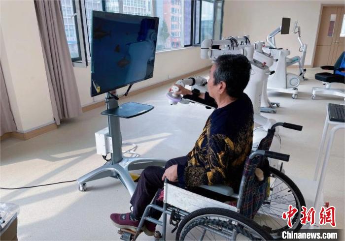 寧陽縣醫(yī)養(yǎng)服務中心內,老人在借助智能化設備做康復訓練。寧陽縣委宣傳部供圖