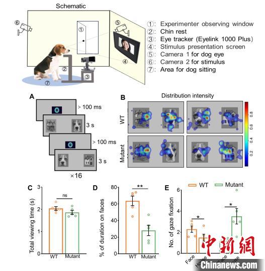 論文第一作者、中國科學(xué)院遺傳發(fā)育所博士生袁思琦說,家犬在長期家養(yǎng)馴化過程中獲得卓越的面孔認(rèn)知能力(會看臉色),是研究面孔加工的理想動物模型之一。在團(tuán)隊前期成功構(gòu)建孤獨癥家犬模型的基礎(chǔ)上,本次研究進(jìn)一步發(fā)現(xiàn)攜帶Shank3基因突變的比格犬表現(xiàn)出類似孤獨癥患者的面孔加工異常,這為研究面孔加工的神經(jīng)機制和干預(yù)方案提供了寶貴的動物模型。
