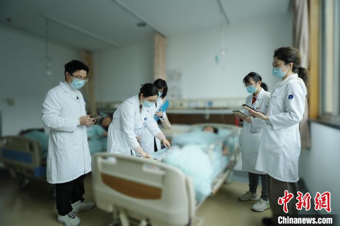 樓敏團(tuán)隊(duì)對(duì)腦梗患者進(jìn)行查房。(浙大二院供圖)
