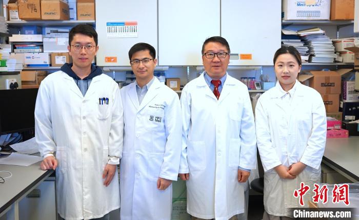 4月10日,香港大學(xué)醫(yī)學(xué)院宣布,其研究團(tuán)隊(duì)成功開發(fā)突破性癌癥免疫新療法,名為光敏混合型γδ-T細(xì)胞外泌體,能針對(duì)并摧毀癌細(xì)胞,為癌癥治療帶來突破。圖為香港大學(xué)醫(yī)學(xué)院臨床醫(yī)學(xué)學(xué)院兒童及青少年科學(xué)系教授涂文偉(右二),以及香港大學(xué)醫(yī)學(xué)院藥理及藥劑學(xué)系、李達(dá)三博士研究中心副教授汪衛(wèi)平(左二)領(lǐng)導(dǎo)的研究團(tuán)隊(duì)。 (香港大學(xué)供圖)