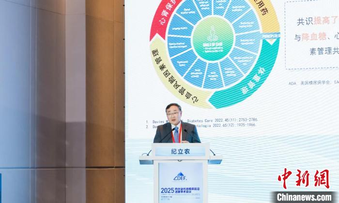 紀(jì)立農(nóng)教授在2025內(nèi)分泌代謝疾病前沿進(jìn)展學(xué)術(shù)會議上發(fā)言。(會議組委會供圖)