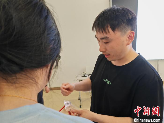 醫(yī)生為學(xué)生講解治療方法。(中新網(wǎng)記者陳靜攝)