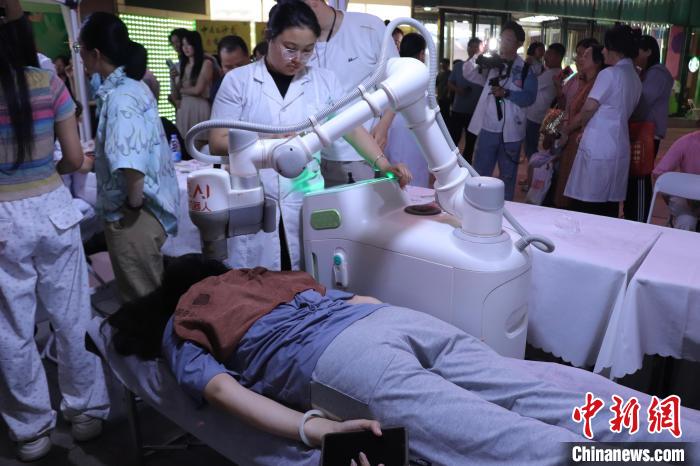 值得一提的是,本次中醫(yī)夜市還引入了熱敏灸機器人、中醫(yī)四診儀、3D足測儀等4臺“中醫(yī)”機器人亮相活動現(xiàn)場,為市民帶來獨特“賽博”養(yǎng)身體驗。